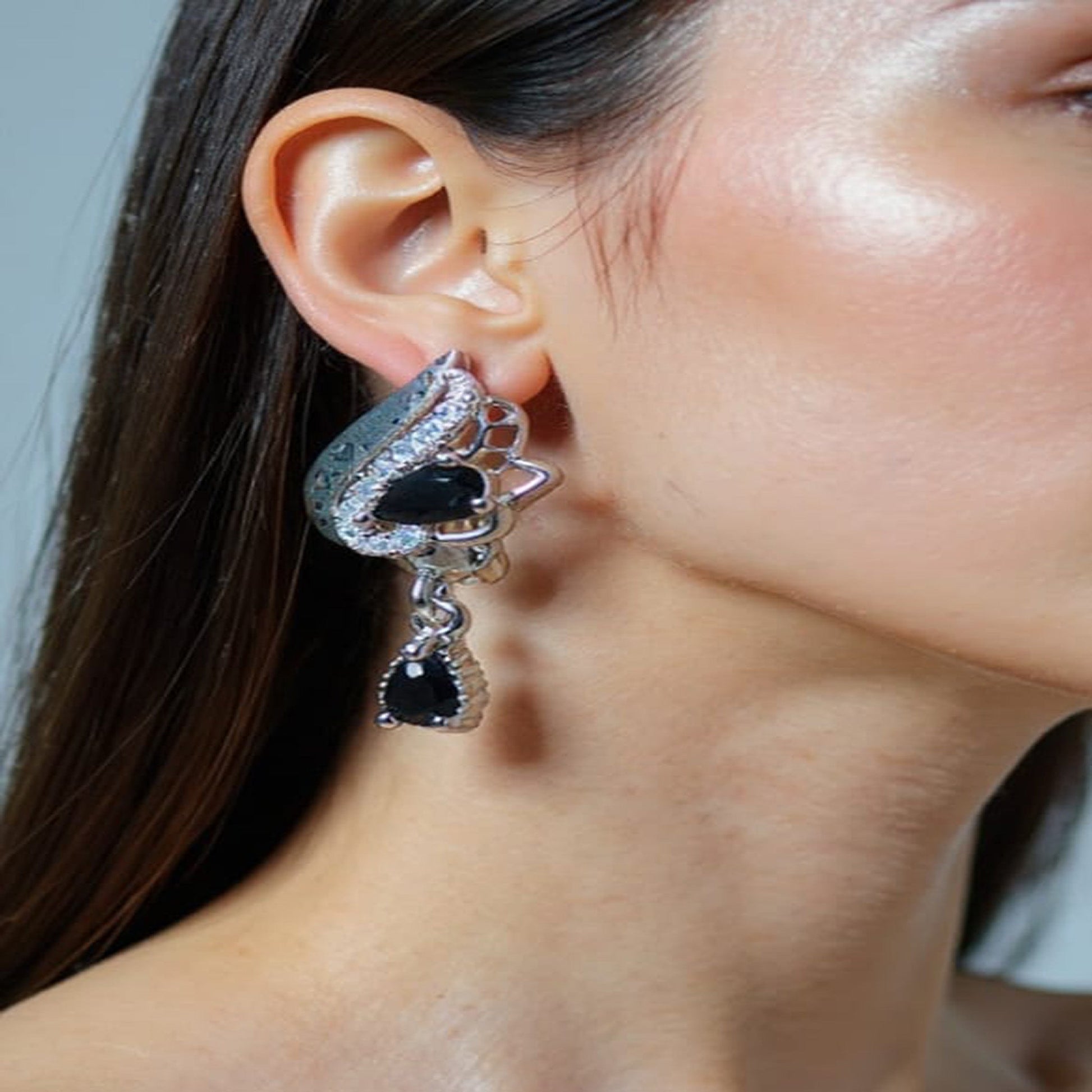 Add a touch of luxury to your everyday style with these stunning silver-plated earrings featuring a deep green gemstone centerpiece. The elegant design is enhanced by sparkling micro-stone detailing, making them perfect for both formal occasions and casual glam.